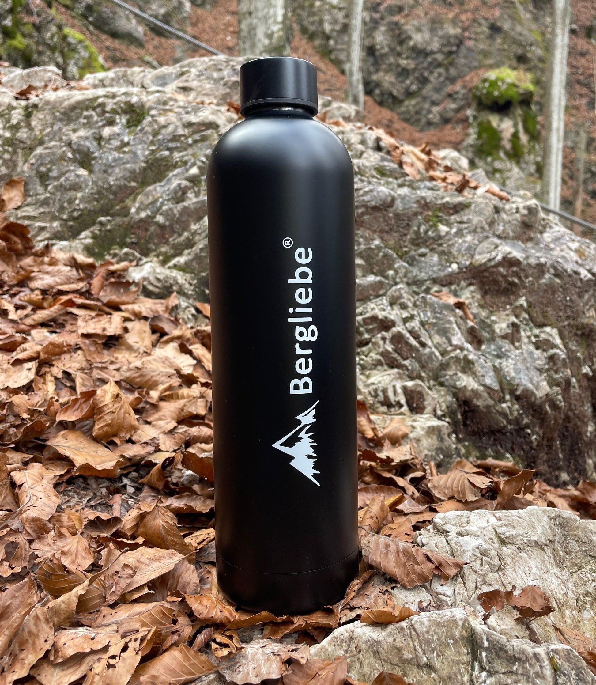 Die Bergliebe Thermosflasche mit 1 Liter Volumen begleitet dich auf jede Wanderung, zum Gipfel oder ins Büro. Sie hält deine Getränke zuverlässig heiß oder eiskalt – ganz ohne Plastikgeschmack.